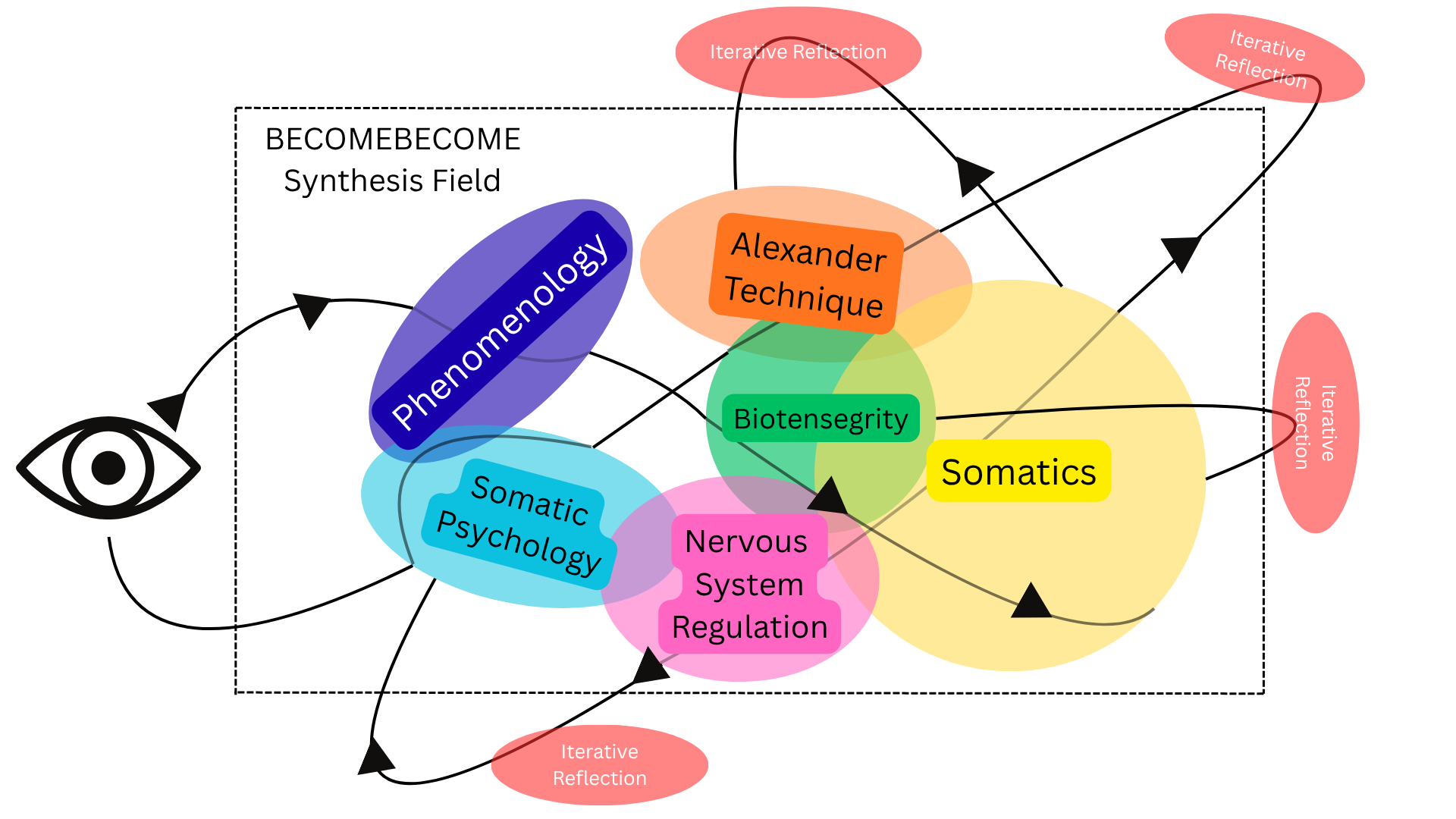 BECOMEBECOME Synthesis Field, drawing from established theories and practices, uncovering cognitive insights (left).